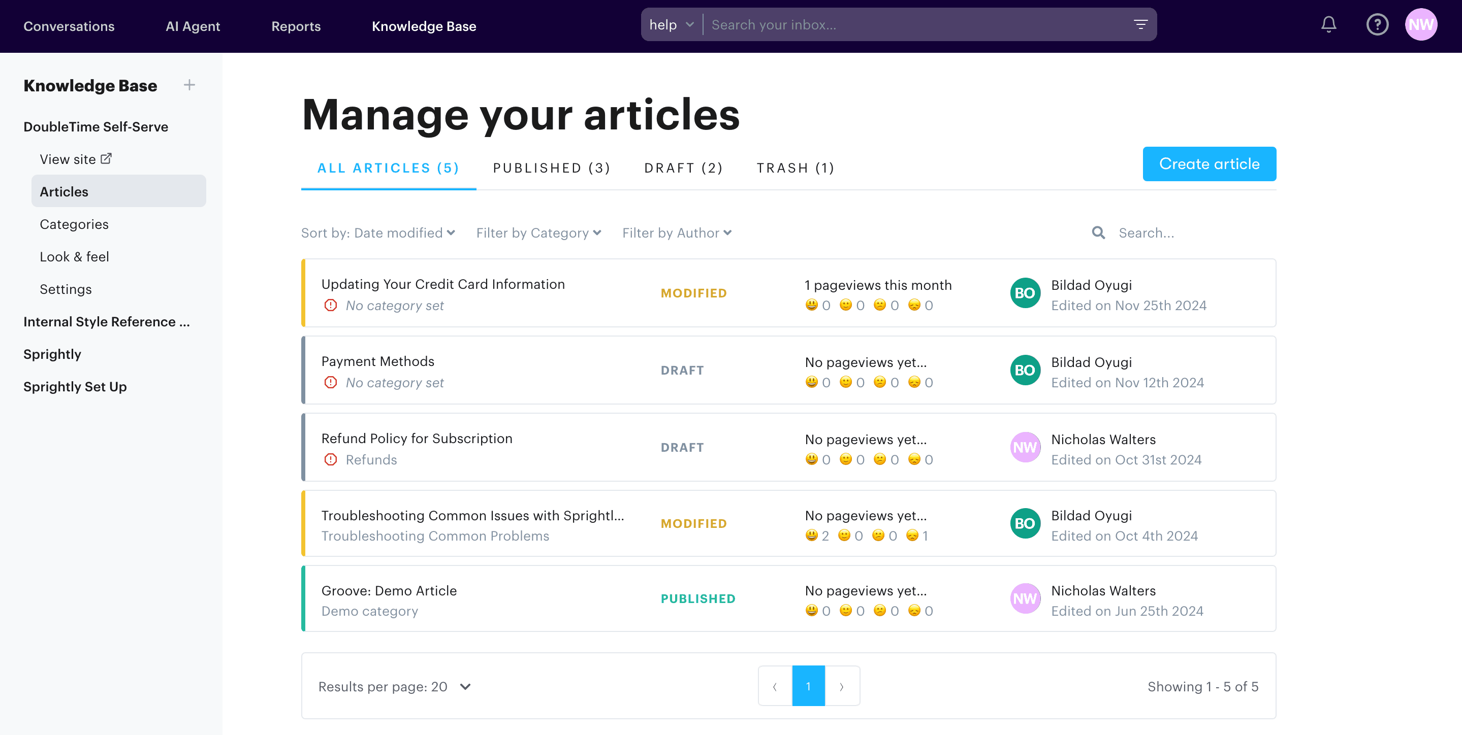 We don’t want Sprightly’s AI agent to be robotic or feel generic. And that’s all part of their approachable branding. At the same time, we still need to ‘train’ it so it has an initial source of data to generate replies.