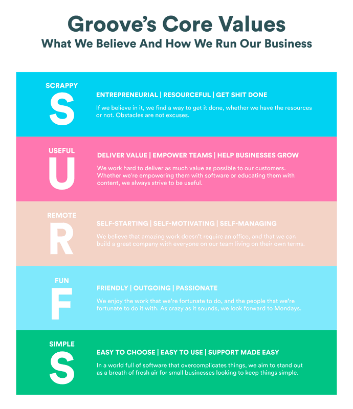 Use the Vivid Vision doc in the article linked above, and then follow our step-by-step process for creating a genuine set of core values that will push your team closer together and forward as one: How We Developed Our Business’s Core Values (And Why You Should Too).
