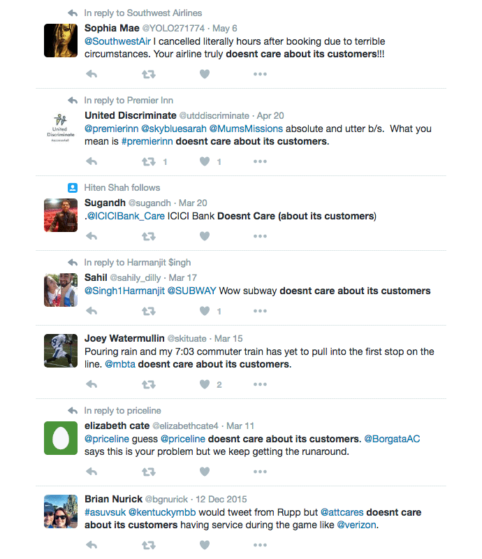 Almost ALL companies care about their customers. And many of the companies being complained about, even in that screenshot above, have also been praised for great customer service.