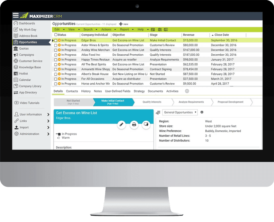 With offices in Canada, England, and Australia, as well as business partners in the United States and around the world, Maximizer has helped over 120,000 companies increase sales, build relationships, and boost their bottom line. Maximizer CRM comes loaded with features, all at one simple price. We include modules for sales, marketing and customer support, as well as must-haves such as customization and mobile access.