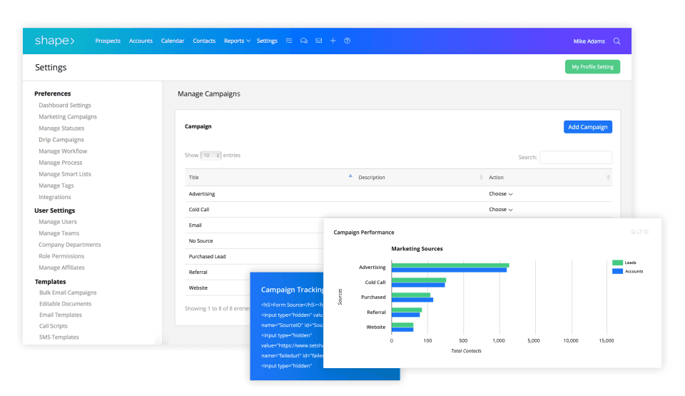 Shape CRM helps you manage your business on one easy-to-use platform. Shape’s cloud-based software offers dozens of tools designed to manage and automate your online marketing and promotions via email and SMS, capture and service leads from online sources, organize sales pipelines, nurture prospects and customers, create and send professional online documents, accept online payments, run custom reporting, and automate everyday admin tasks. Shape is the most flexible CRM ever!