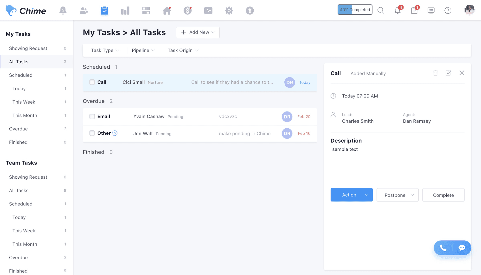 Chime is an all-in-one CRM solution suite. We offer help in generating leads, cultivating relationships, encouraging leads to close, and more. We offer many solutions for agents and teams of all sizes.