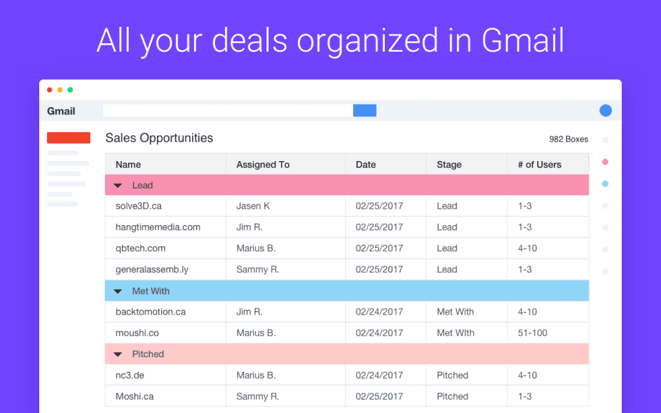 Streak is the only CRM integrated entirely within your Gmail inbox, and it works alongside all your other G Suite applications. It can be used to track many business processes including sales, partnerships, support, hiring, deal flow, and much more. Streak also includes a powerful set of email tools such email tracking, which lets you track when an email is opened.