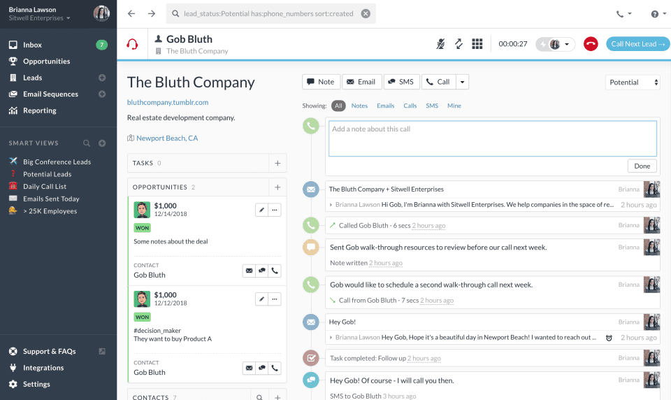 Nutshell is the sales team’s essential CRM. Move faster, work smarter, and close more deals with best-in-class tools, time-saving integrations, sales automation, and world-class live support. We love sales teams and sales teams love Nutshell. Don’t take it from us, take it from thousands of companies growing every day with Nutshell. We just need a CRM that gets it and does it right, and that’s Nutshell. – Kristen Hay, Bloomerang.