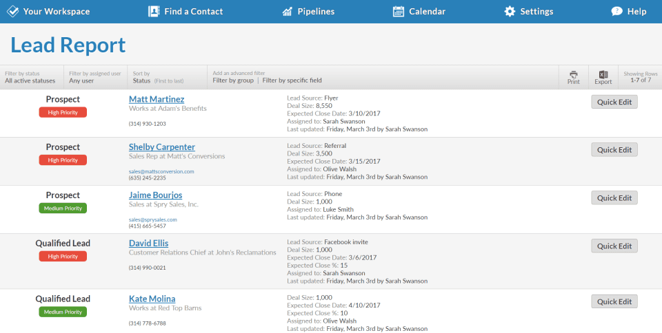 Less Annoying CRM is a simple contact manager built from the ground up for small businesses. Manage your contacts, leads, notes, calendar, to-do’s and more, all from one simple web app. Our product is founded on three core principles: simplicity, affordability, and outstanding customer service. All users get an unlimited free 30-day trial to exhaustively test every aspect of the CRM, and customer service is always free through the phone and email if users have questions.