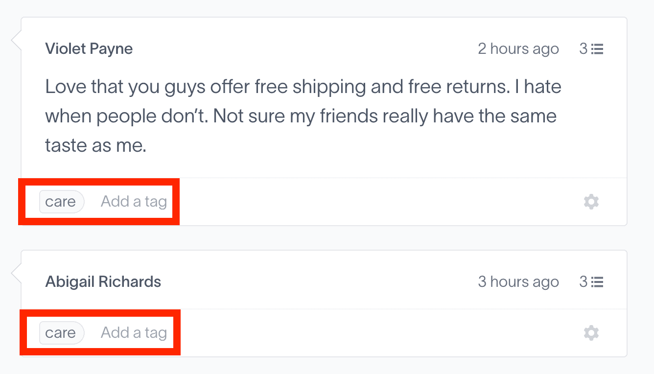 Delighted, for example, can be used to tag open-ended NPS responses. Sentiments about the customer service experience could be tagged with “care”: