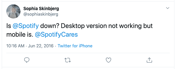 Spotify responded quickly with a follow-up question. A little while later, it responded again with a note that the problem had been resolved after they made “a few tweaks backstage.”