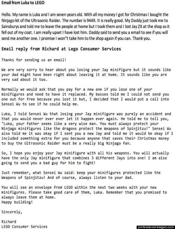 He was so upset about it, he wrote a letter to Lego explaining his situation.