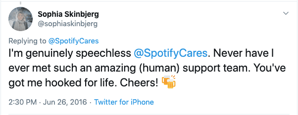 Sophia seemed impressed by Spotify’s follow-up and communication and expressed her appreciation.