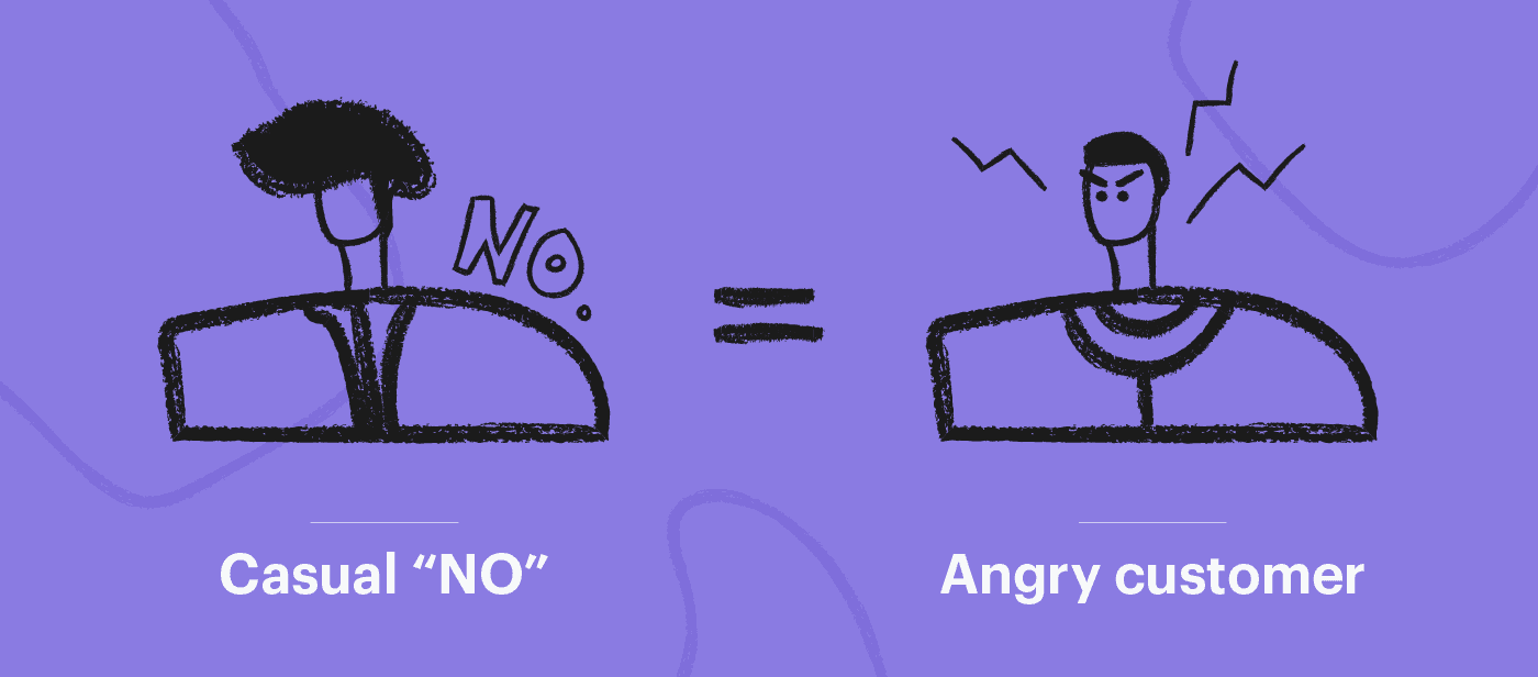 By being too casual when you have to say no to a customer, you imply that you’re not taking their request seriously.