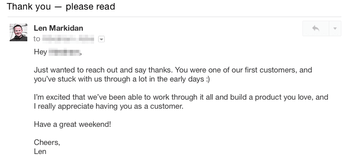Take the time to send each customer a sincere, personal thank you that shows them why you’re grateful for their business.