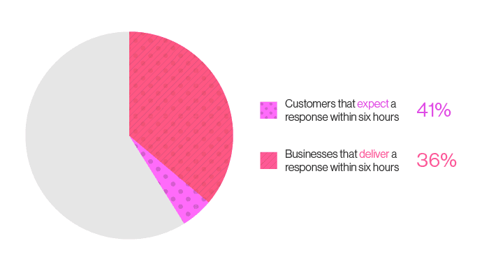 One survey by Forrester found that 41% of customers expect a response to a customer support email within six hours, but that only 36% of businesses studied actually responded within that timeframe.