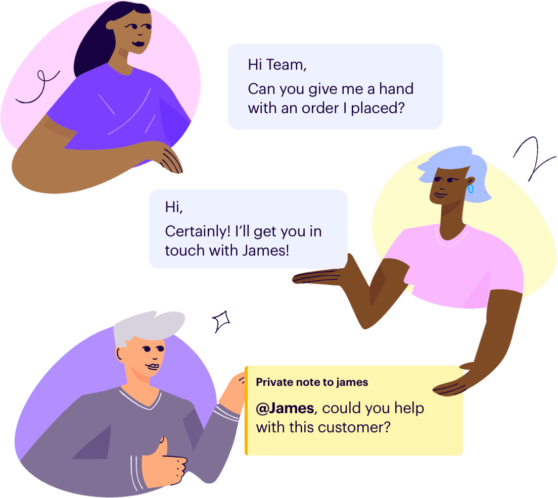 An all-in-one inbox solution unifies conversations across multiple channels (and senders) into one central place. This shared inbox eliminates “who did what?” madness that can easily develop when multiple people are replying to customers.
