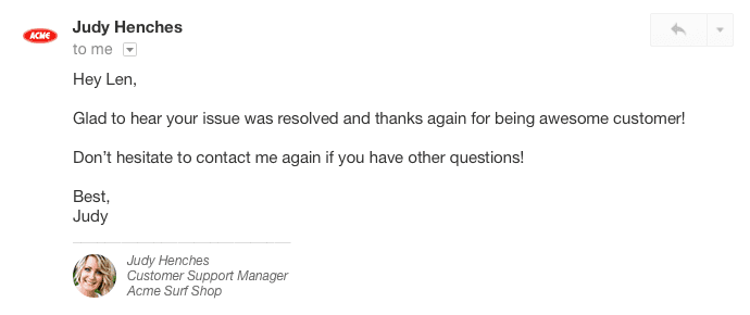 Just by keeping this question in the back of your mind, you’ll begin to subconsciously add personal touches to every support interaction.