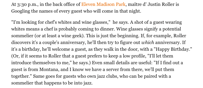 While I wouldn’t recommend this approach for most businesses (chances are, your customers don’t want exactly the same experience as Eleven Madison Park’s customers do), it’s a great example of how you can deliver a more personal touch in customer service.