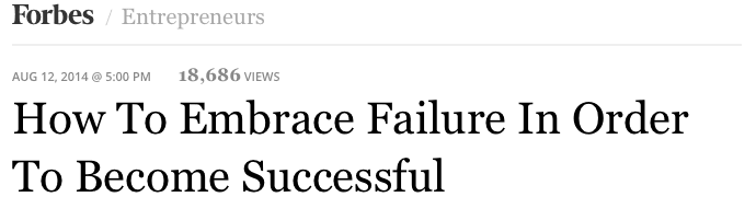 I’m not on board with the people who glorify failure. I think that startup culture has a bit of a weird failure obsession, and it breeds the notion that failure is a good thing.