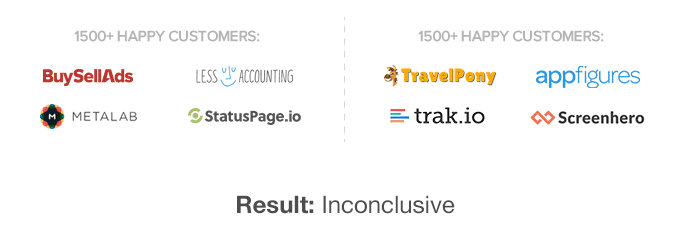 We thought we’d try showing customer examples from a variety of industries in hopes of determining which logos were most relatable to visitors. No difference.