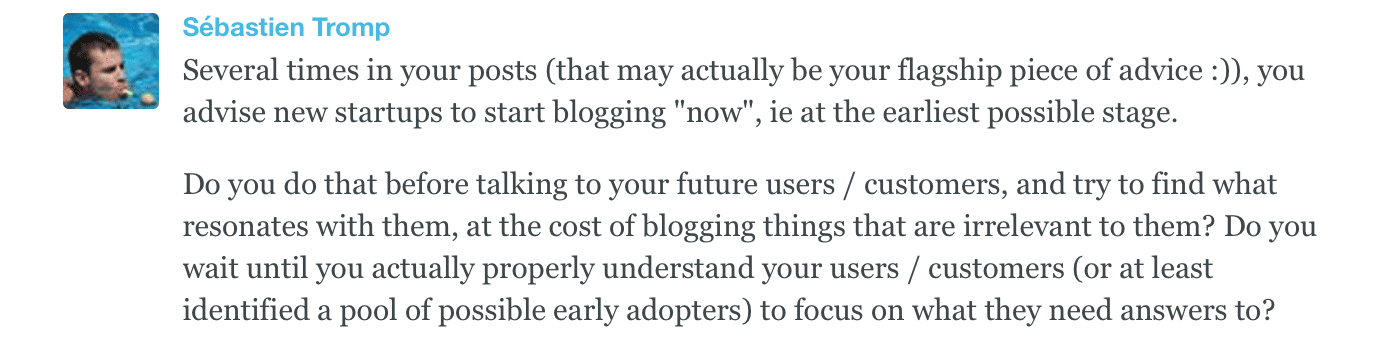 At the same time, however, Step 1 needn’t be a drawn-out process. It can be as simple as emailing/calling 10-15 people and asking them: “what’s the biggest problem that I can solve for you?”. This simple exercise will arm you with incredibly valuable insights that can lead to your first batch of successful blog posts.