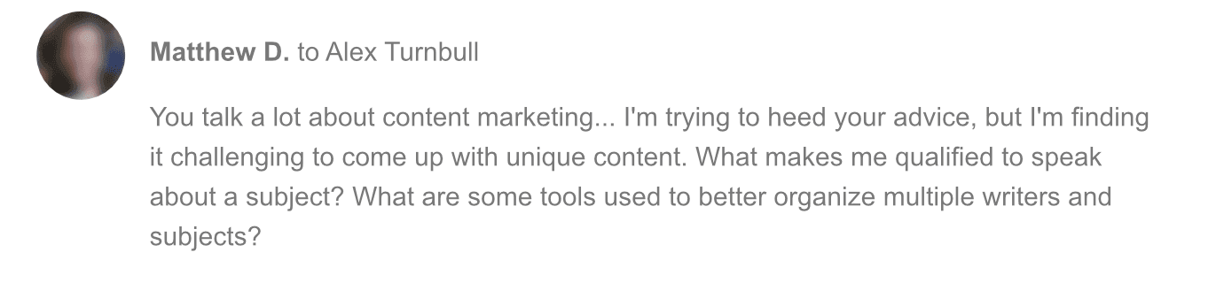 And then, use those insights to create content that’s unique in that it addresses the problem in a way that’s better than they’ve ever seen before because it speaks so directly to them.