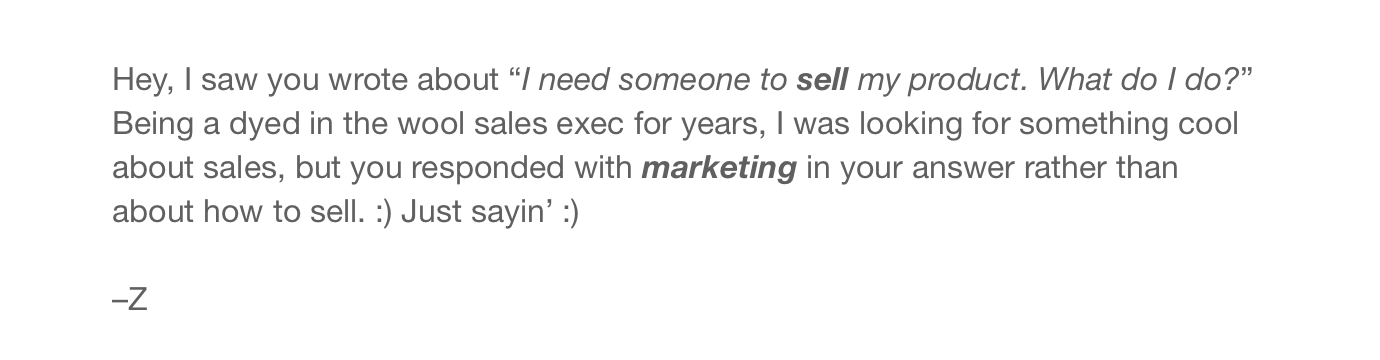 Soon after I posted this, I got an email from Zorian, who (rightly) pointed out that my answer was focused entirely on marketing, and ignored sales completely.