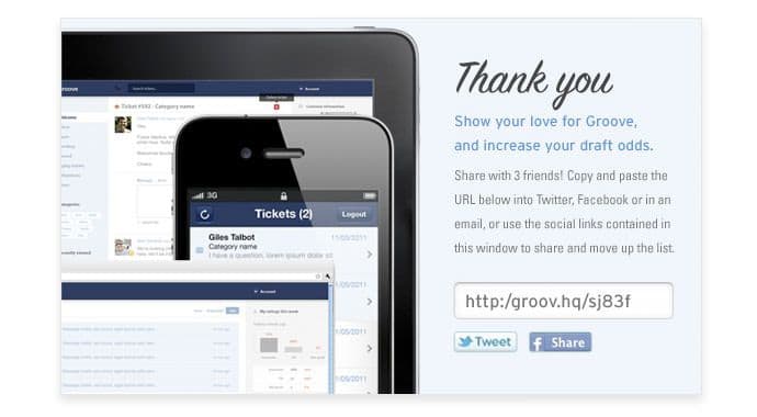 We did have on big win when it came to beta user acquisition – just in terms of the sheer number of signups – with our viral signup form that rewarded people on the waiting list for sharing Groove with their friends.