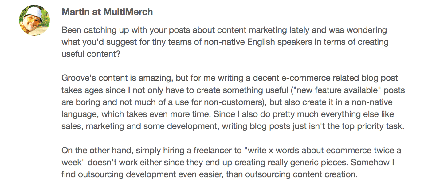 But you should either be prepared to pay for a reputable content marketing agency, or find someone who understands how content marketing really works (and not just someone who can write well) and take the time to work with them so that they understand your audience and the voice and tone you want to convey, as Steli Efti does.