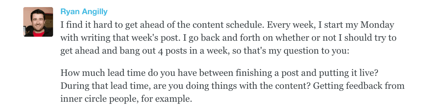 For bigger posts—the ones where we really want them to make an impact because they’re culminations of massive amounts of testing or learning—we’ll solicit feedback from people we trust, but this is a one or two day process, not one that drags on for weeks.