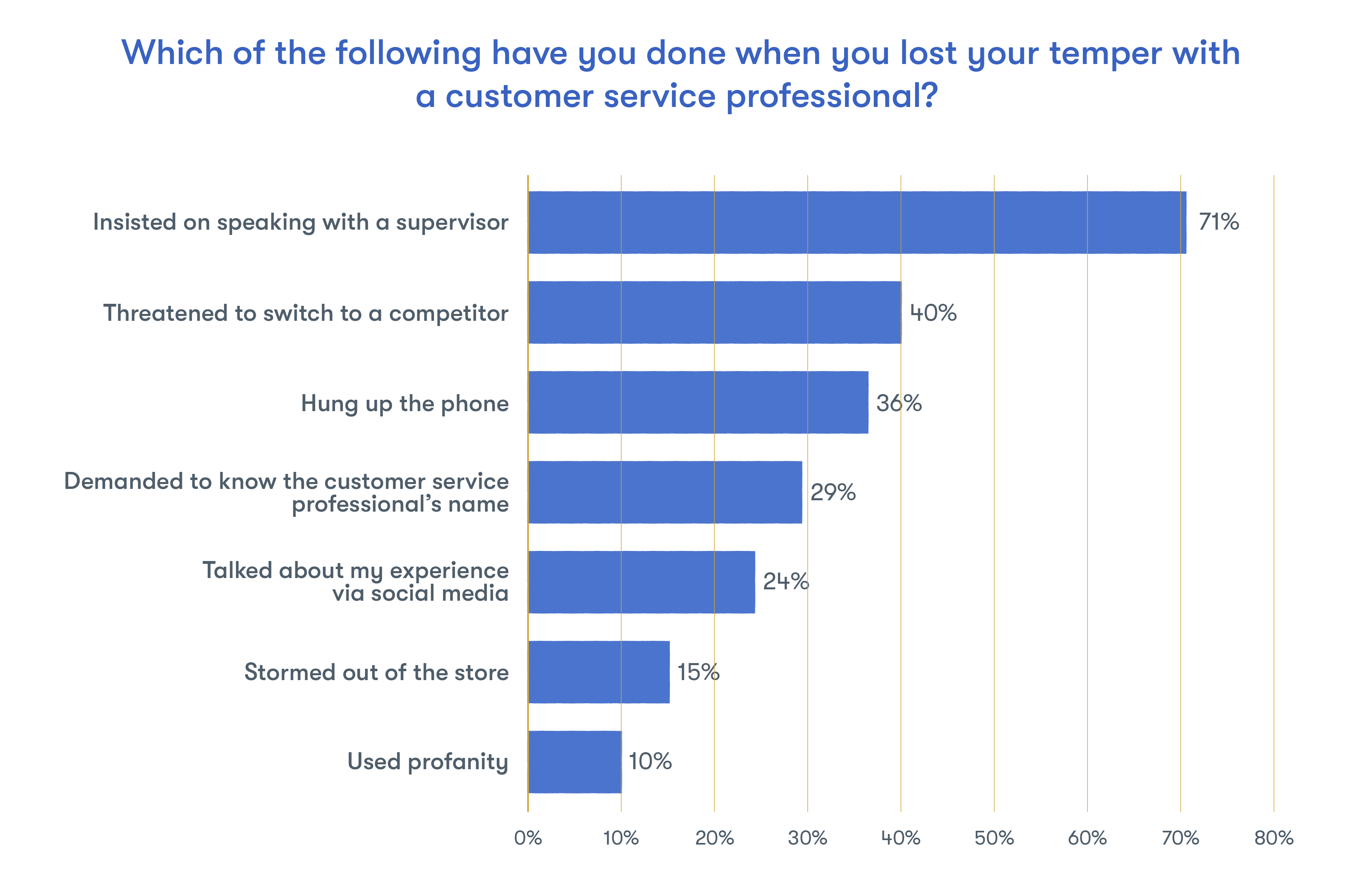 A study from Echo Research Group looked at what customers mostly commonly do when they lose their temper.