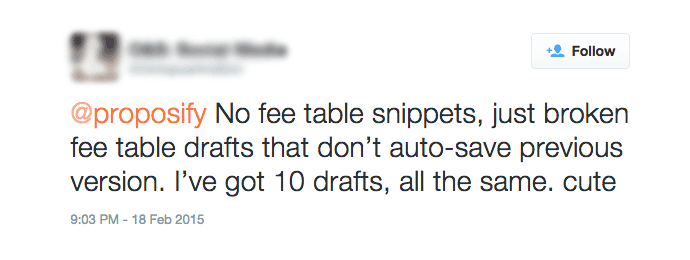 Proposify, a SaaS company whose product helps people put together super-polished proposals, got a Tweet from a less-than-pleased customer.