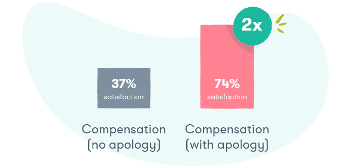 But when the business added an apology on top of the compensation, satisfaction doubled to 74%.