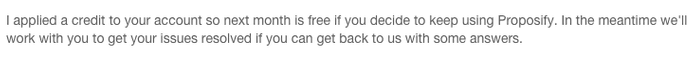 It’s a move that shows that Proposify values their long-term relationship with the customer far more than that month’s bill.