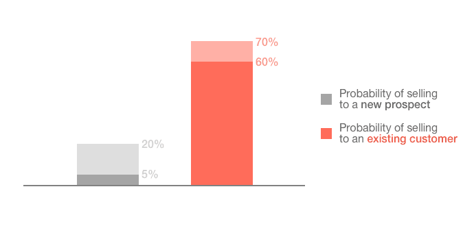 The probability of selling to a new prospect is 5–20%. The probability of selling to an existing customer is 60–70% Share on X