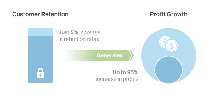 Businesses that grew their customer retention rates by as little as 5% saw profit increases ranging from 25% to 95% Share on X