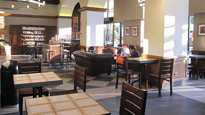 The second cafe, however, is a bit different. Warm, cozy colors. Big, comfortable chairs with free wifi, and baristas that greet you with a smile and an eagerness to help. A regular coffee here will set you back at least $2.