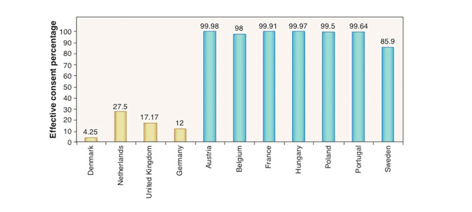 The chart compares organ donation opt-in rates from various European countries.