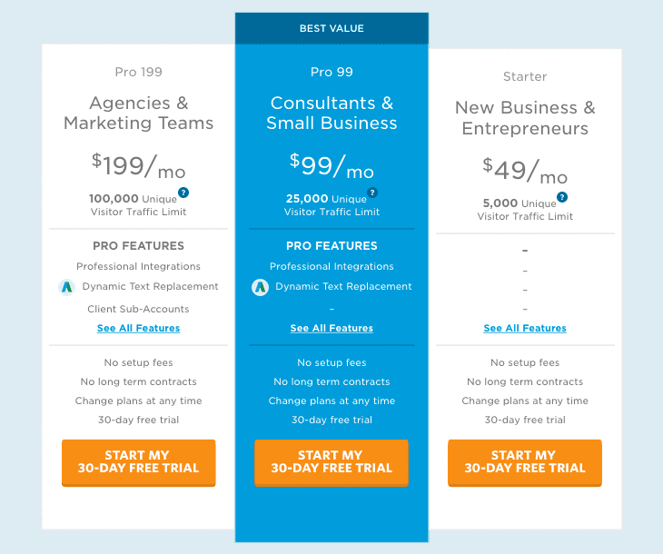 By highlighting their “Best Value” plan, Unbounce delivers a not-so-subtle nudge that helps make the choice easier for new customers.