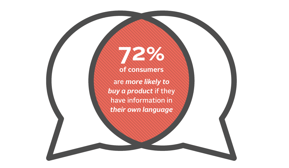 A survey by Common Sense Advisory of more than 2,400 web users in eight countries found that 72.4% of consumers said they would be more likely to buy a product if they had information in their own language.