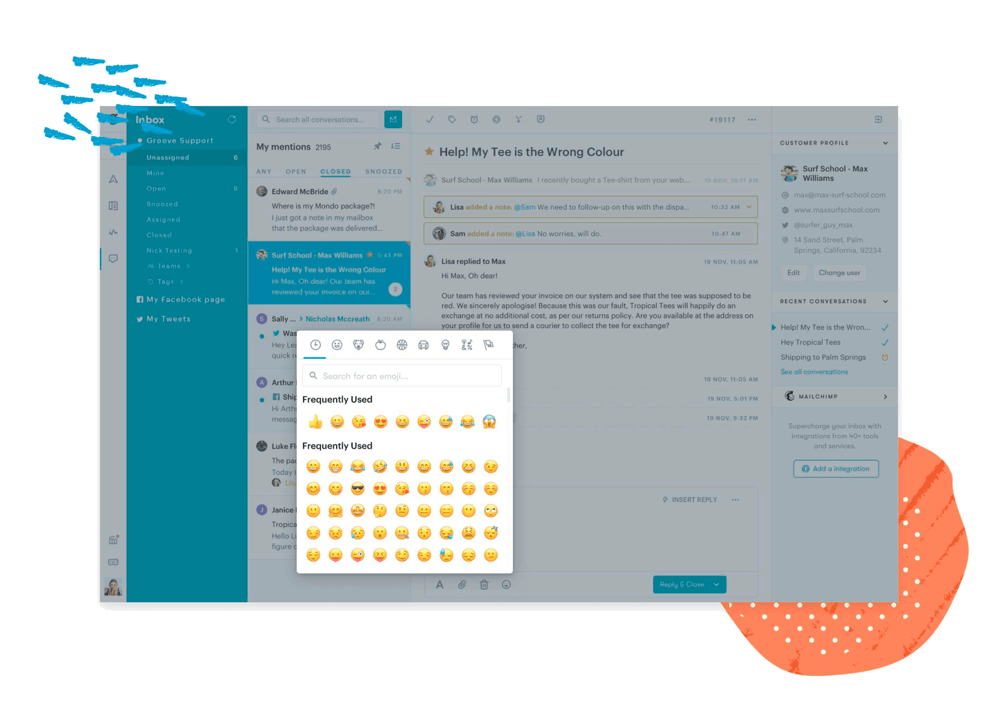 We’ve added a great little emoji picker which is available immediately on all reply and note editors in your Groove Inbox.