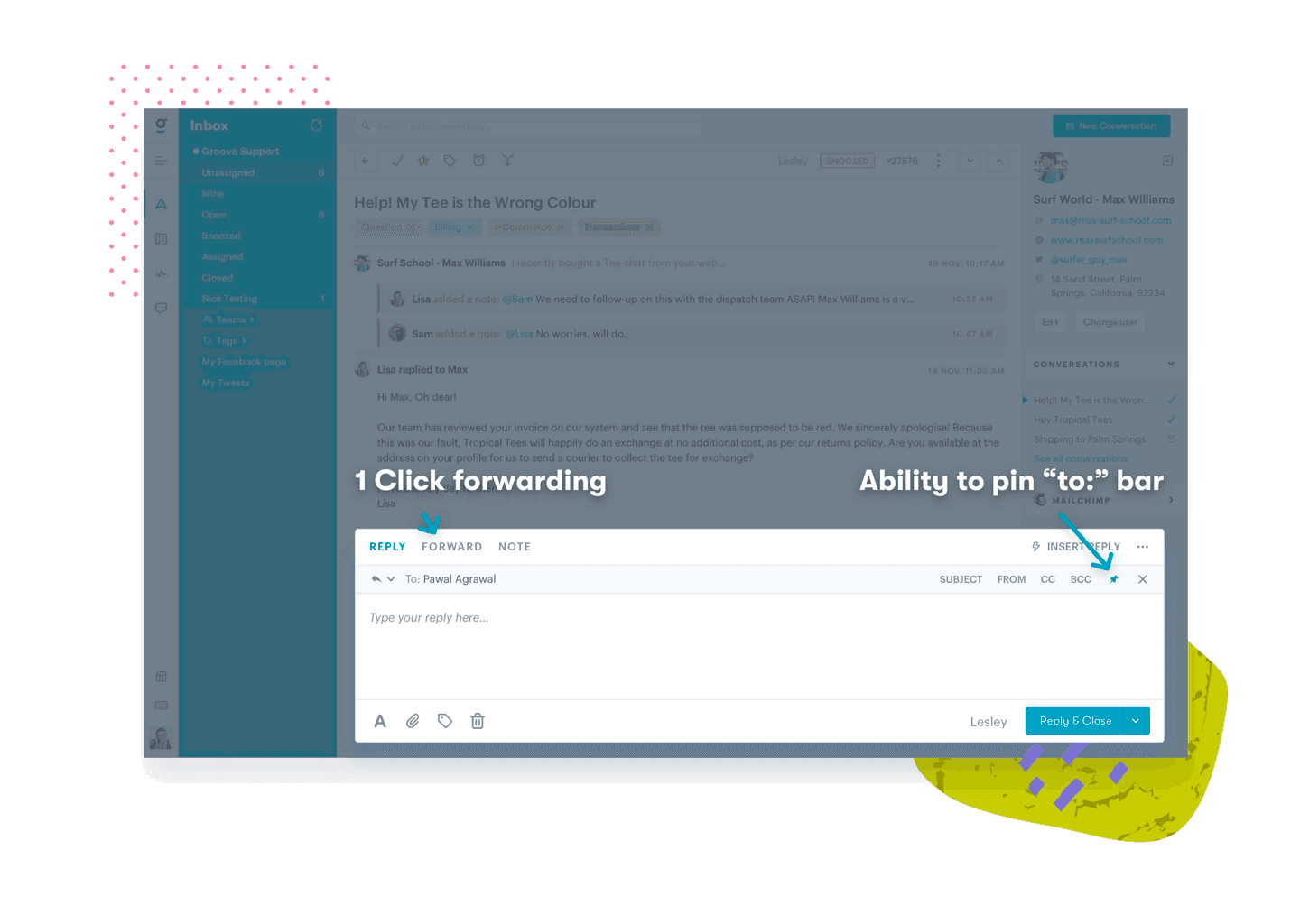 During the sunsetting of Legacy Groove and launching Groove 2.0, we iterated over a few variations of the header of the reply editor. One common request was to always see the “To:” information.