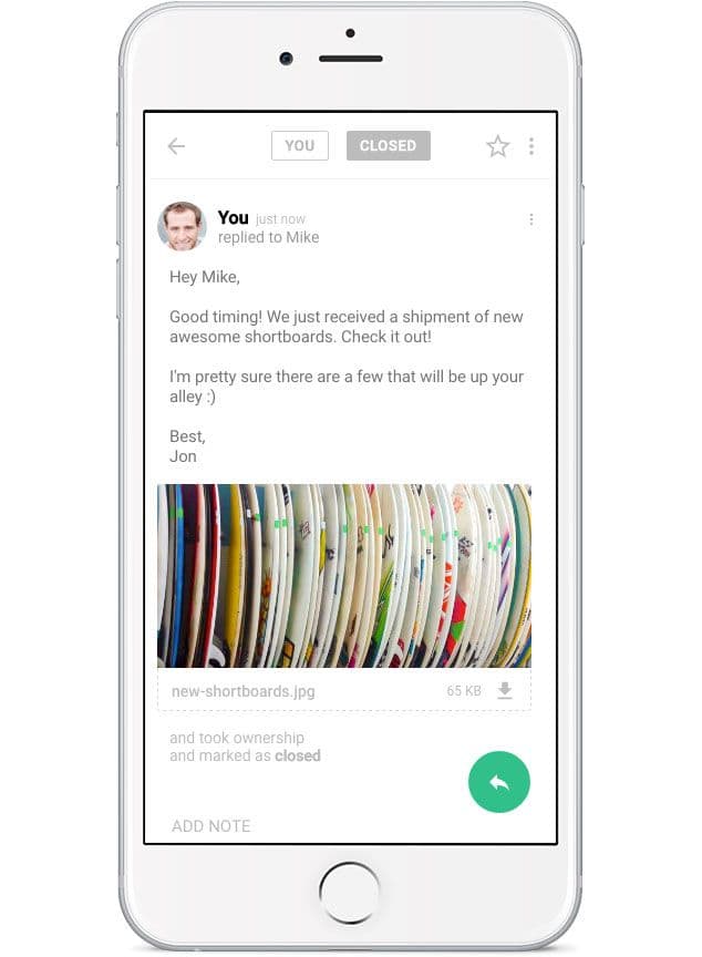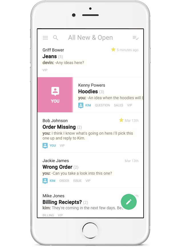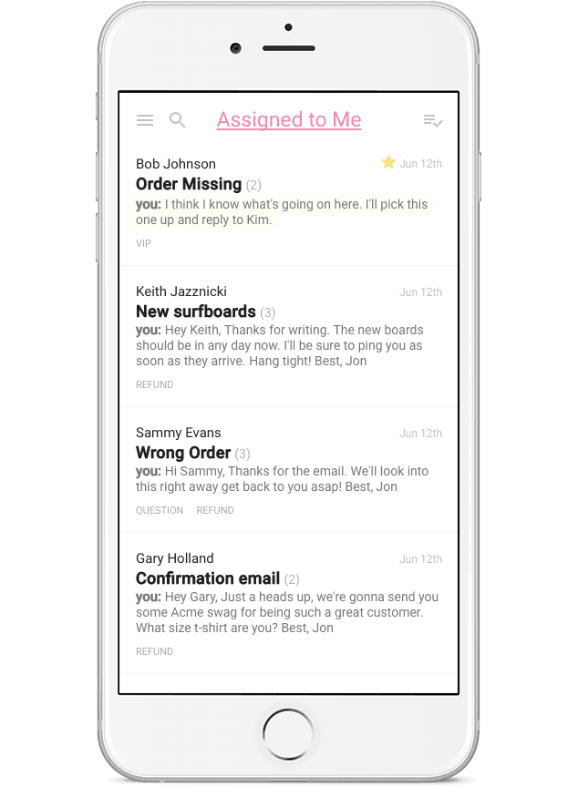 For example, swiping left on an open ticket will close it, while swiping left on a snoozed ticket will unsnooze it. You can see exactly what the action will be as you’re swiping.