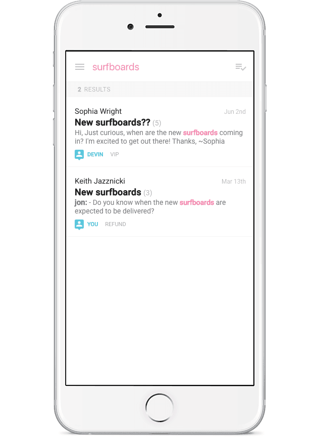 Searching for something specific? The search results page now highlights the words used in your search query, so it’s much easier to find the ticket(s) you’re looking for and be on your way.