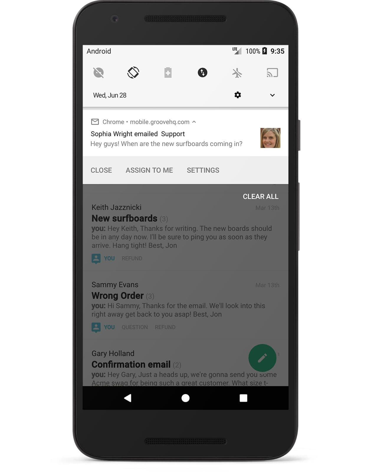 Oh my yes. For those of you using Android devices, we have some really good news for you — mobile notifications have become a reality! They can be enabled in the mobile web app and once turned on they replace the email notifications that you have checked in your Groove account settings on desktop.