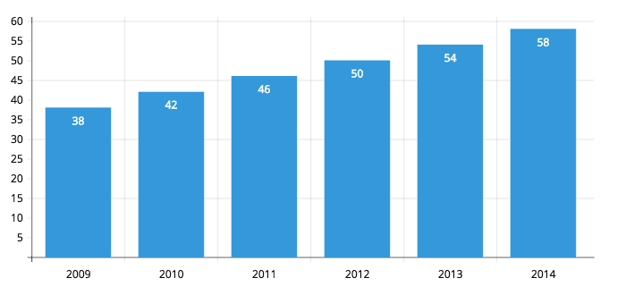 According to a Forrester survey, the percentage of customers who have used live chat for customer service has grown from 38% in 2009 to 58% in 2014, and it’s continuing to rise.