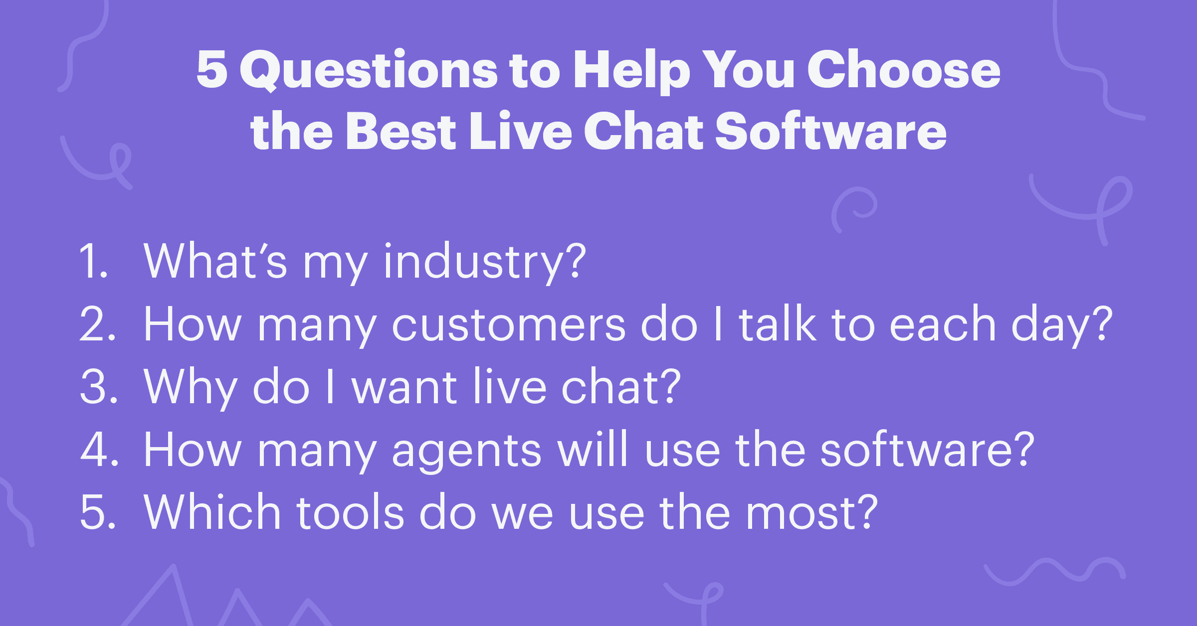 Again, this is a number you’ll want in mind for pricing or plan type. Decide if you’ll have every customer service team member on live chat or just dedicate a few. Maybe you’ll only want certain customer success or sales agents manning live chat.