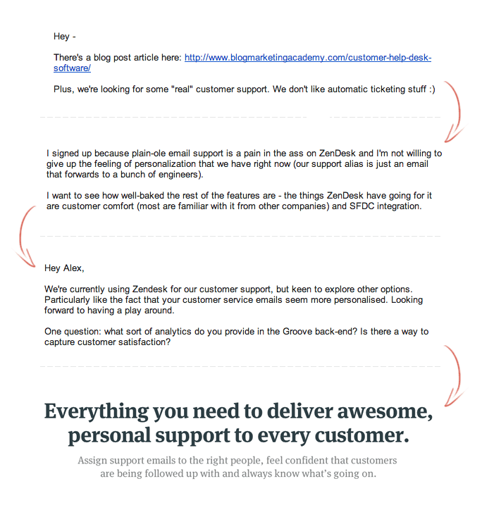 We also knew that we wanted customer stories to feature prominently on our site. We wanted people to be able to visualize themselves in the shoes of a Groove customer, reaping all of the benefits of doing business with us.