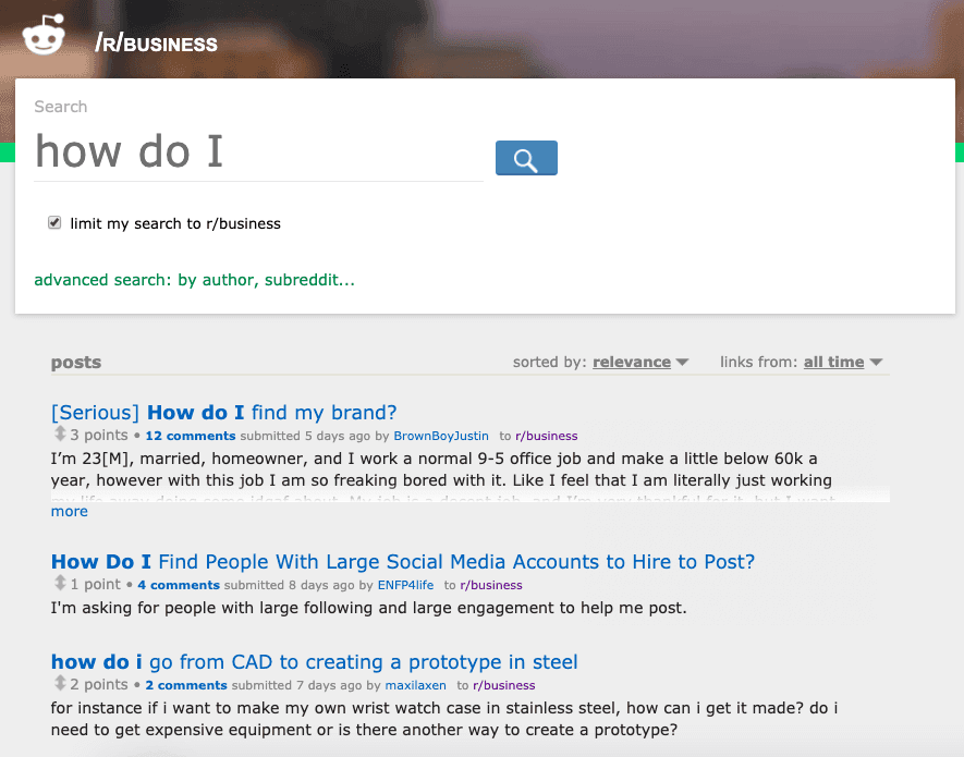 Another thing that I’ve seen work for some—it’s a tactic that we sometimes use to source blog post ideas—is searching online communities for problems that people are facing.