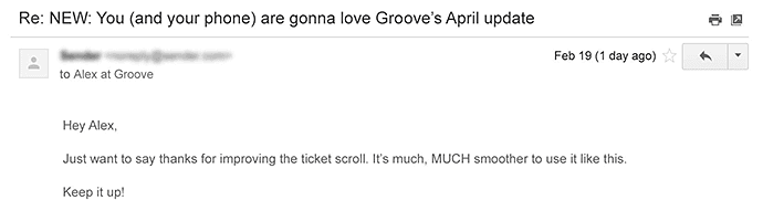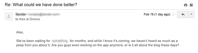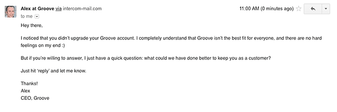 Whenever a customer churns from Groove, we send them an email to try and find out why: