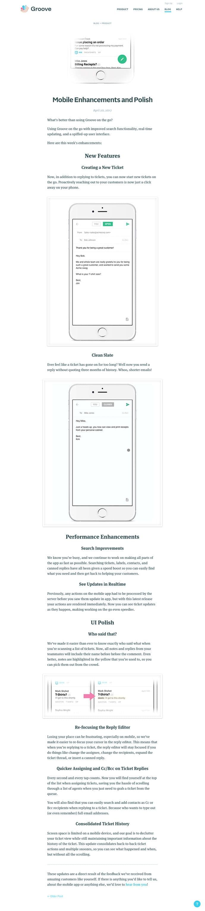 Every two weeks, we publish an update on our product blog that compiles all of the product work we accomplished in the previous two weeks.