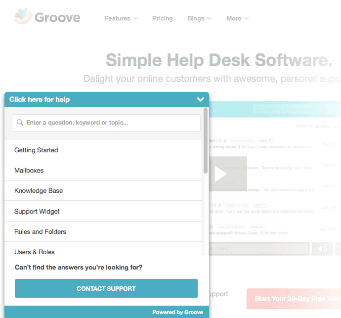 There are a number of solutions you can use here, but our favorite way to accomplish this is with Groove’s support widget: