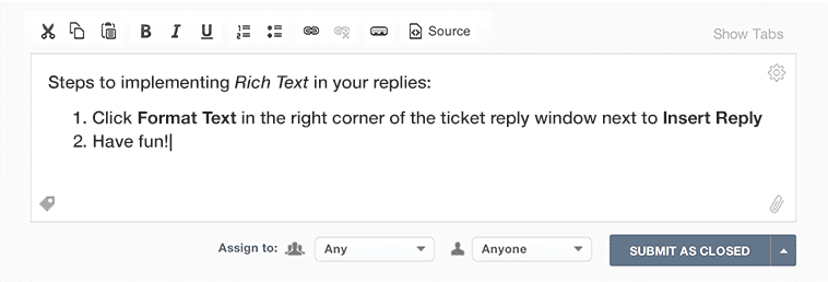 In addition to the ticket inspector, we’ve added the rich text editor to text fields for common replies, your auto-reply, and email signatures (yes, that means fancy HTML signatures for you, too!)